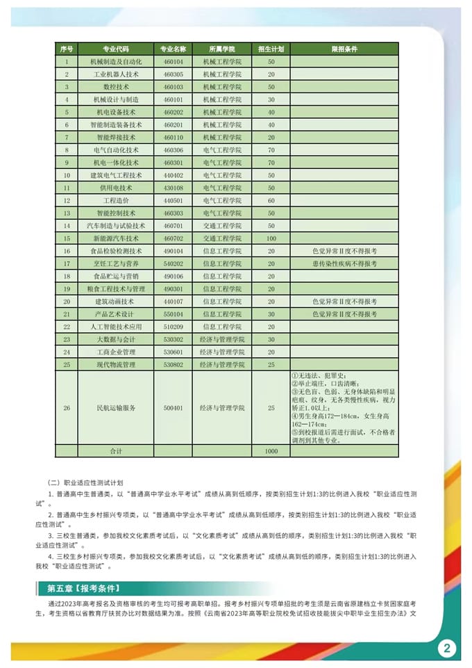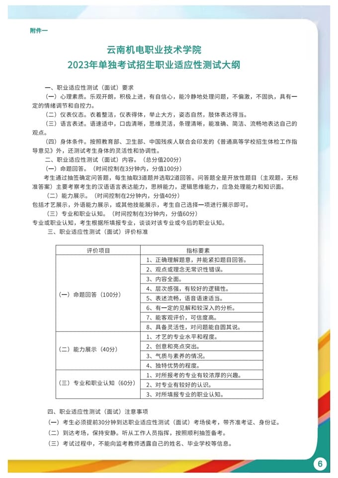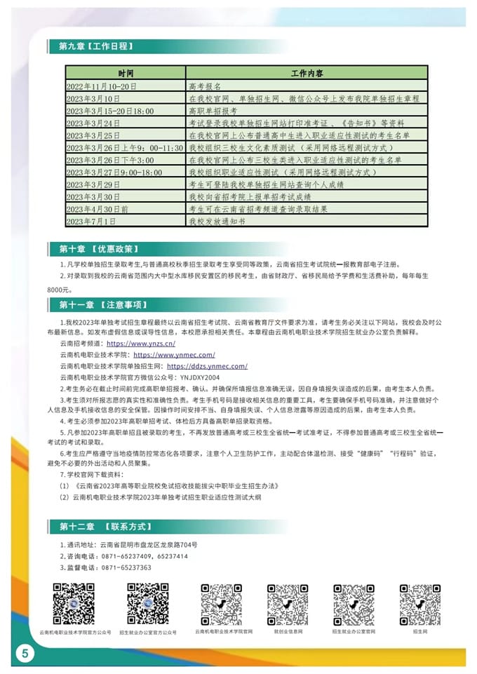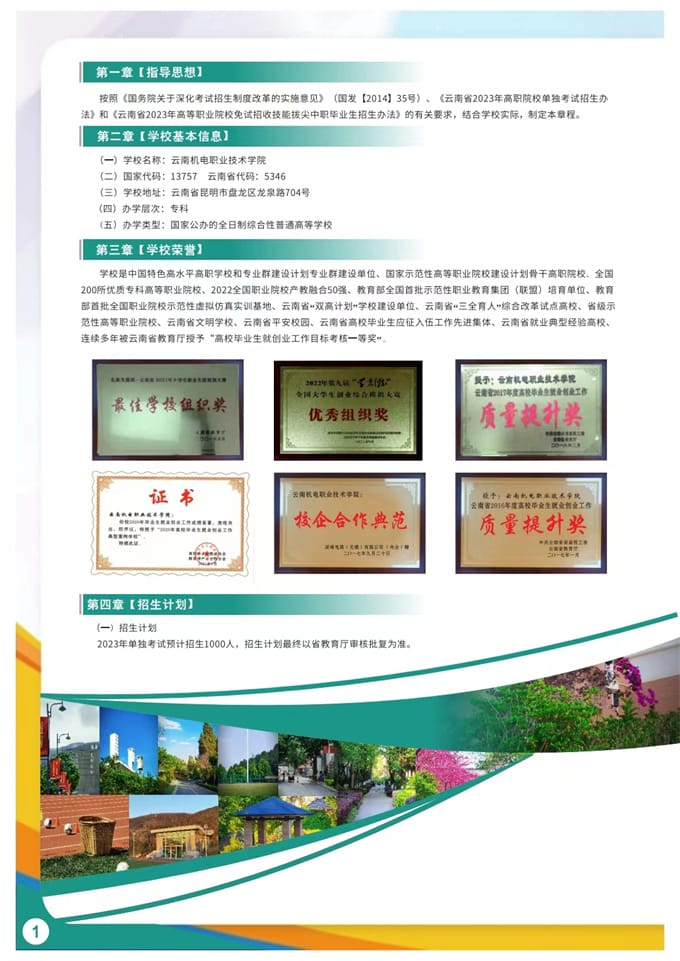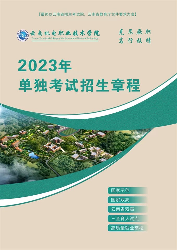 云南机电职业技术学院2023年单独考试招生简章